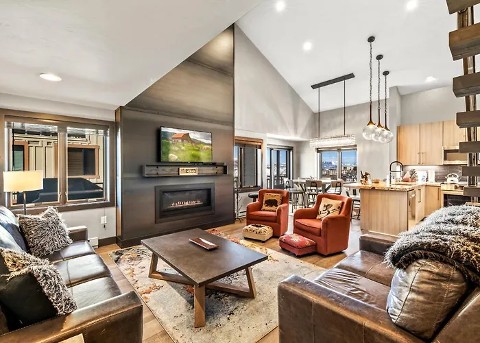 The spacious 154 m² Bear Claw 405 - Ski-In Ski-Out Condo! Steamboat Springs is located in an old part of Steamboat Springs, a mere 9 minutes on foot from the full service Rocky Mountain Day Spa. Situated just steps from Gondola Square, the 3-bedroom apartment entices guests with an outdoor swimming pool, a Jacuzzi and a sauna.